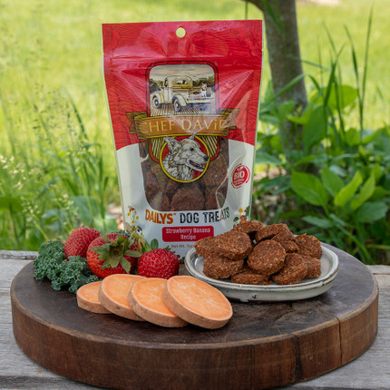 Small-batch crafted by Chef David, Strawberry Banana Dailys offer a clean, naturally sweet treat dogs love and pet parents feel confident giving.
